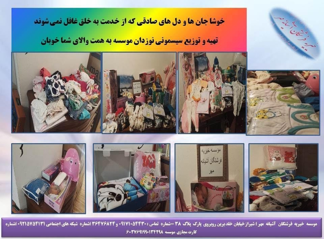 – **کمکهای غیرنقدی:** دریافت کمکهای غیرنقدی مانند لباسهای نوزاد، پتو، وسایل بهداشتی، پوشک، اسباببازی و لوازم تغذیه.