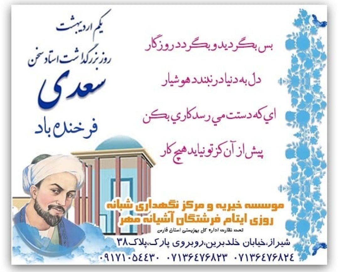 روز سعدی، فرصتی است برای تأمل بر میراث ماندگار ادبیات فارسی و تلاش برای پرورش ارزشهای انسانی در زندگی روزمره. 🌿