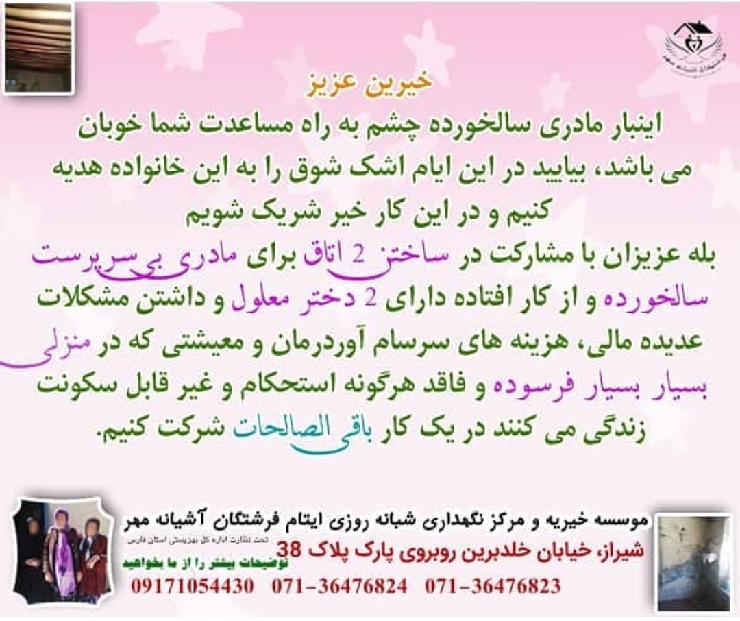 2. **کمک‌های غیرمالی:** تهیه غذا، پوشاک، لوازم ضروری زندگی، و حتی وسایل آموزشی برای کودکان نیازمند می‌تواند از راه‌های غیرمالی حمایت از این قشر باشد.