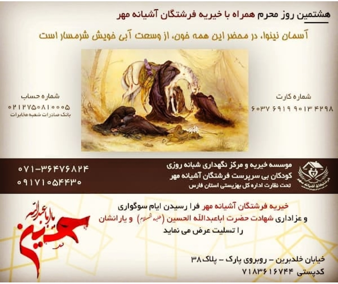 هشتمین روز ماه محرم نیز مانند دیگر روزهای دهه اول محرم با برگزاری مراسمهای عزاداری و روضهخوانی همراه است. این روز در برخی مناطق و روایات به یاد حضرت علیاکبر (ع)، فرزند بزرگ امام حسین (ع)، گرامی داشته میشود. حضرت علیاکبر (ع) یکی از جوانان برجسته و باوفای کربلا بود که در روز عاشورا به شهادت رسید. او به دلیل شباهت ظاهری و اخلاقی به پیامبر اسلام (ص) مورد احترام و علاقه فراوان بود و شهادتش ضربهای بزرگ بر امام حسین (ع) و اهلبیت وارد کرد.