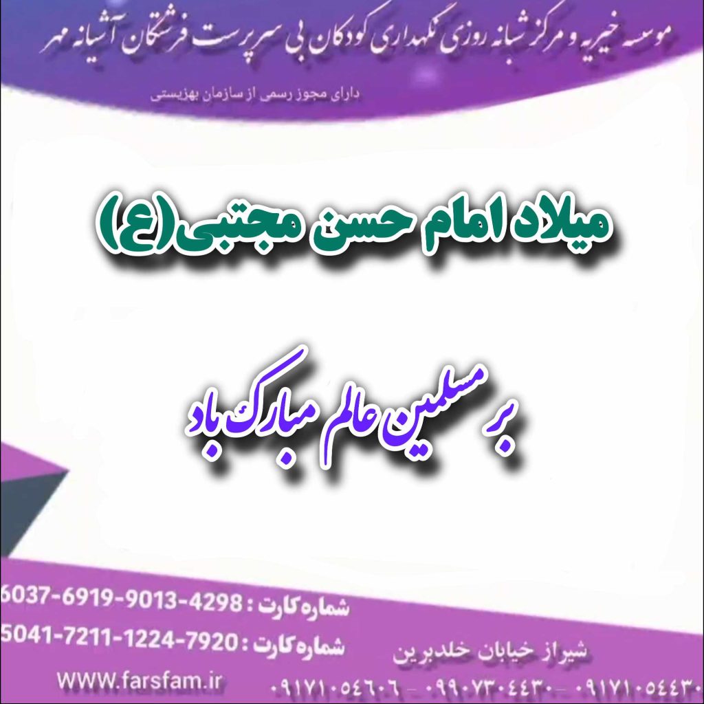 میلاد با سعادت کریم اهل بیت، امام حسن مجتبی (ع)، بر همه نیکوکاران و خیراندیشان مبارک باد 🌸✨. این روز بزرگ، بخشش، دستگیری از نیازمندان و مهربانی بیپایانی است که همیشه روشن است در این میلاد فرخنده، خیریه «فرشتگان آشیانه مهر» از شما نیکاندیشان دعوت میکند تا در مسیر احسان و یاریرسانی به نیازمندان همقدم […]