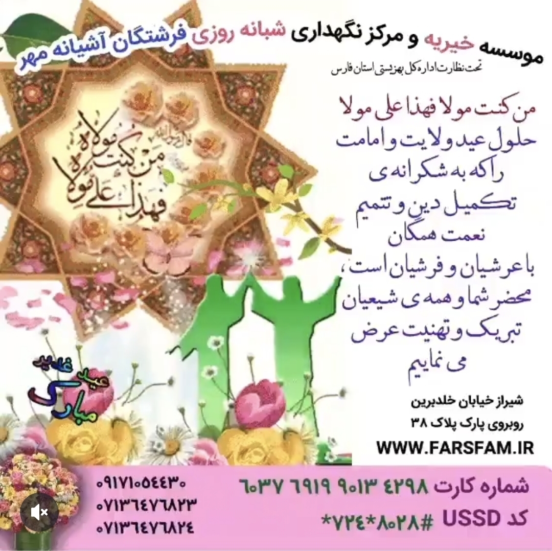 امروز یادآور روزیست که دست حق، راه را نشان داد و عشق، مسیرمان را روشن کرد. عید غدیر خم، فرصتی است تا با دلهایی مهربان و دستانی بخشنده، پیمان دوبارهای با ولایت و خدمت به خلق ببندیم.