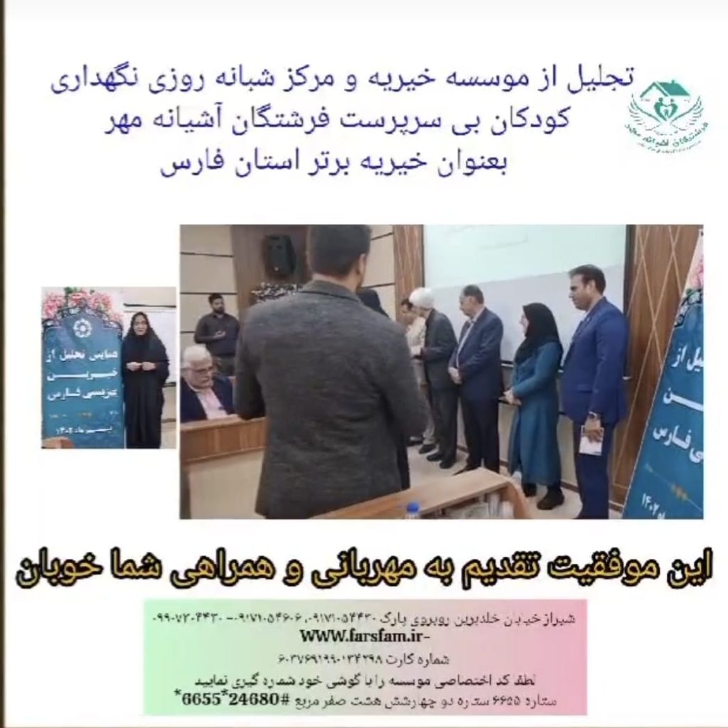 - ۱. قدردانی از همراهی مؤسسه فرشتگان آشیانه مهر
