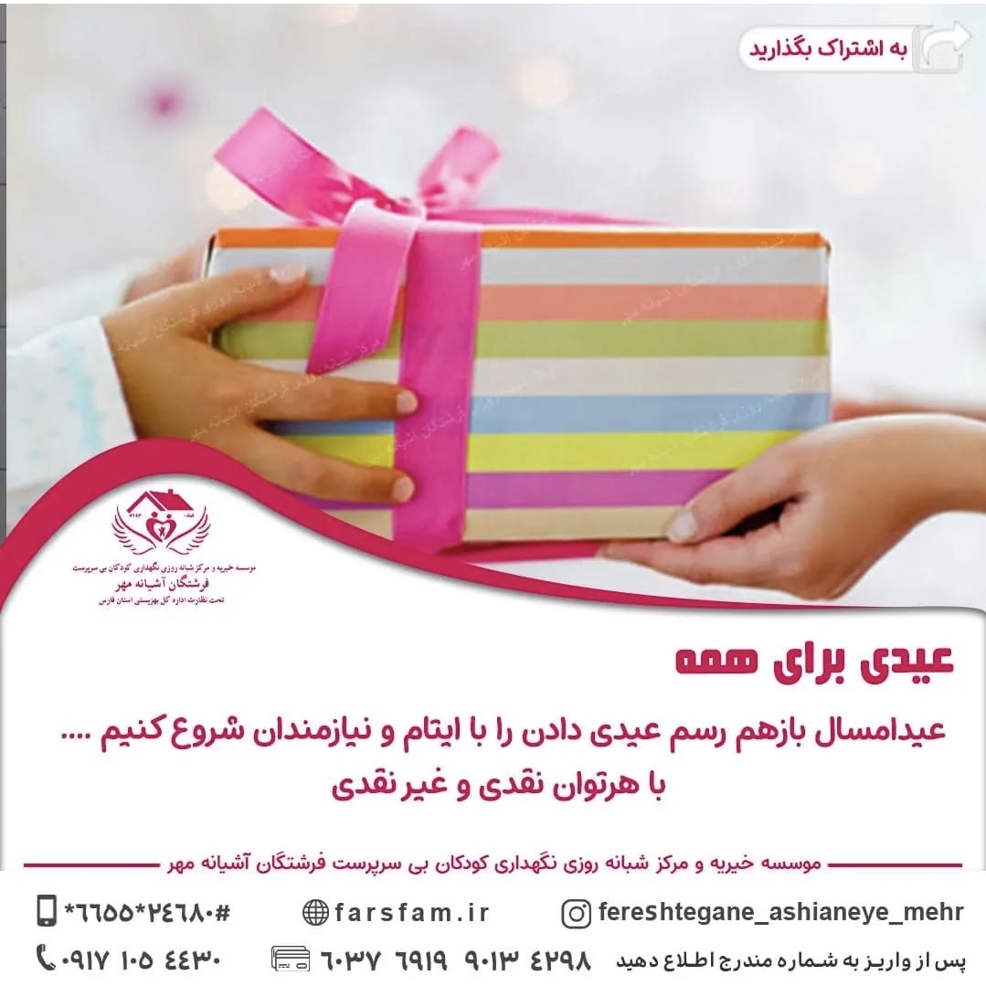 🍃 هر دستی که برای یاری باز می‌شود، نوری در دل یک انسان روشن می‌کند. گاهی اوقات بخش کوچکی از ما، می‌توان از امید برای خانواده‌های نیازمند باشد؛ خانواده‌ای که شاید در پسِ لبخندهای خاموش، دل‌شان از درد و چشم‌شان منتظر معجزه‌ای کوچک باشد