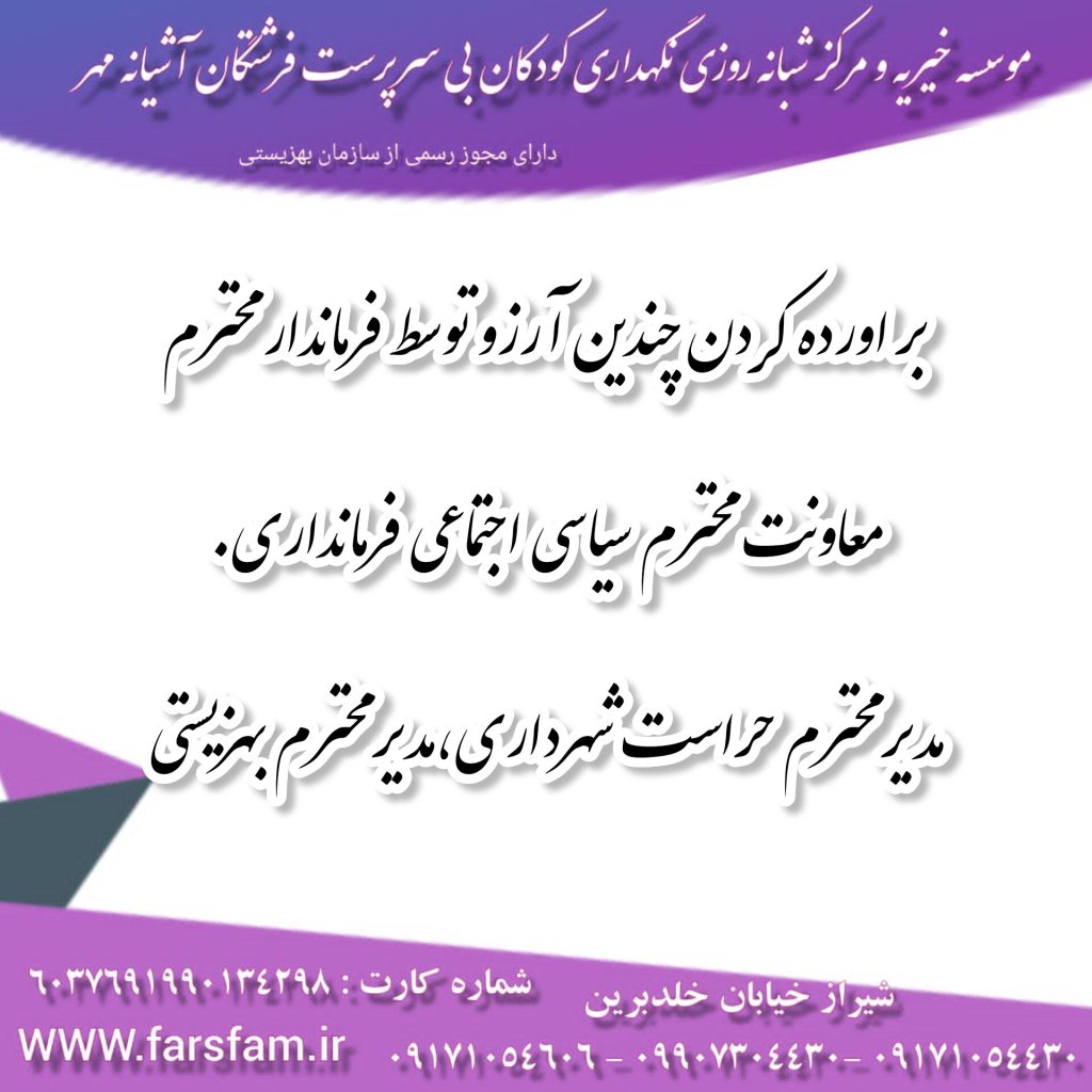 بر اورده شدن ارزوی عزیزان فرشتگان آشیانه مهر