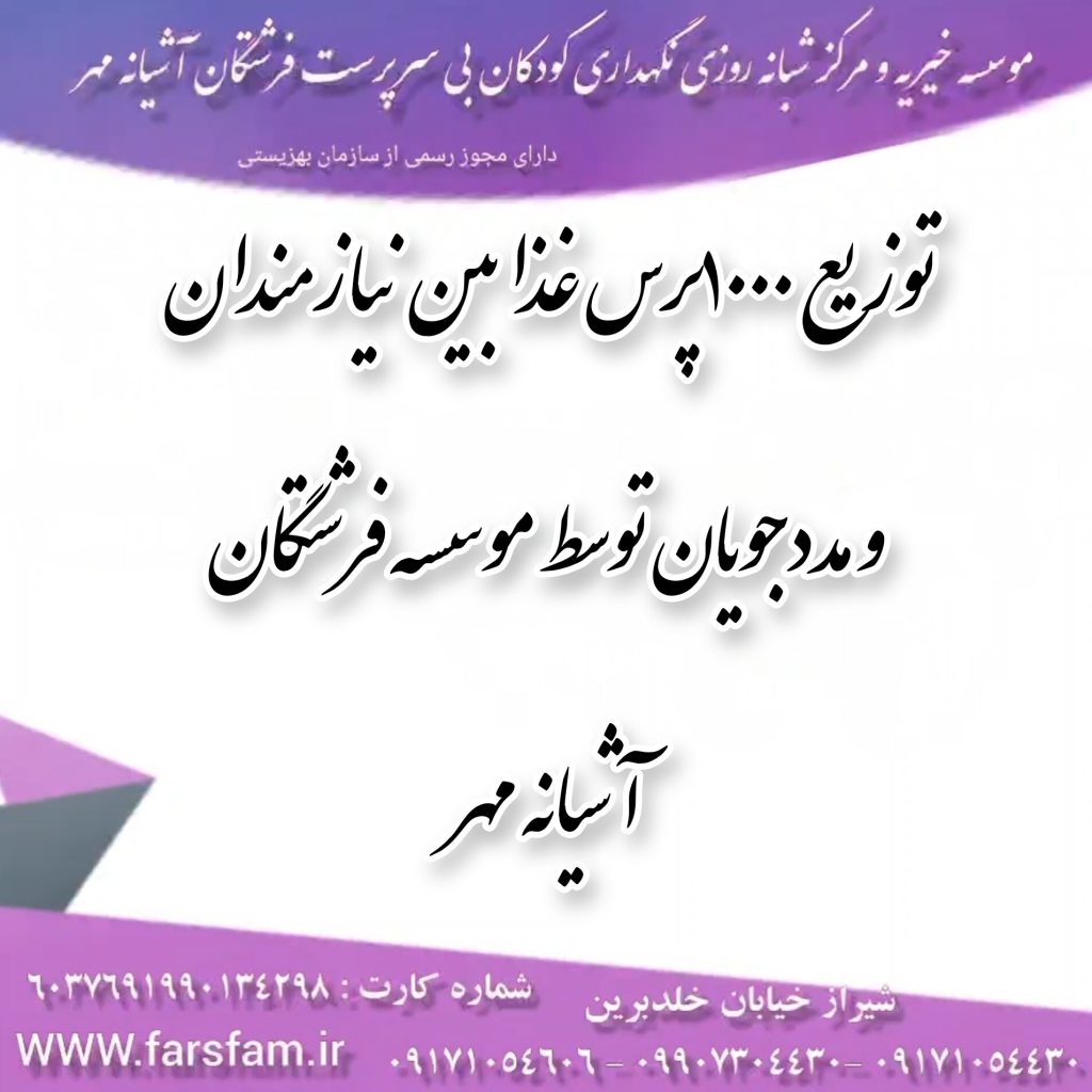 توزیع ۱۰۰۰پرس غذا بین نیازمندان و مددجویان موسسه