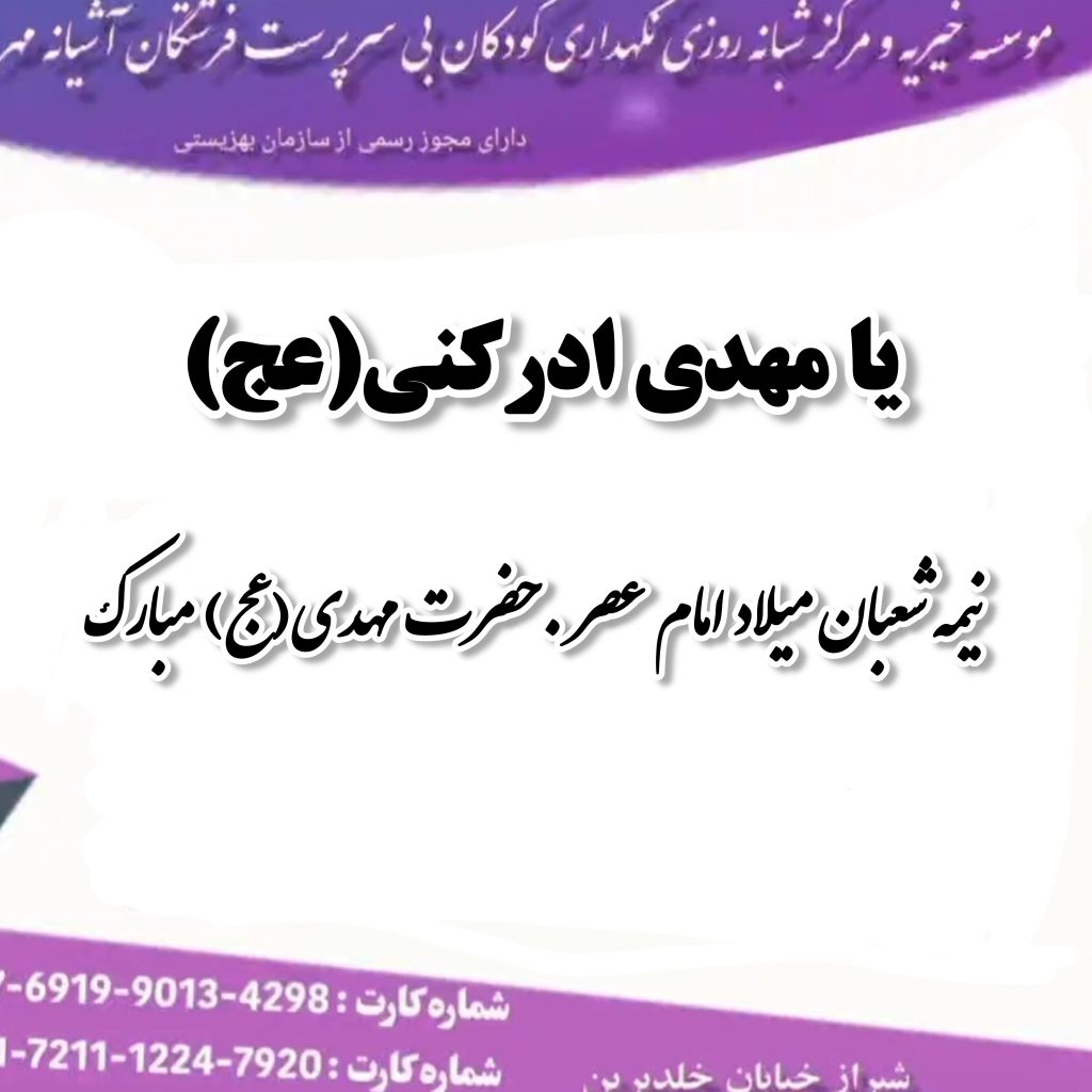 موسسه خیریه و مرکز شبانه روزی فرشتگان آشیانه مهر میلاد آخرین شکوفه ی باغ احمدی، حضرت مهدی(عج) را به شما خوبان تبریک و تهنیت عرض می نماید .