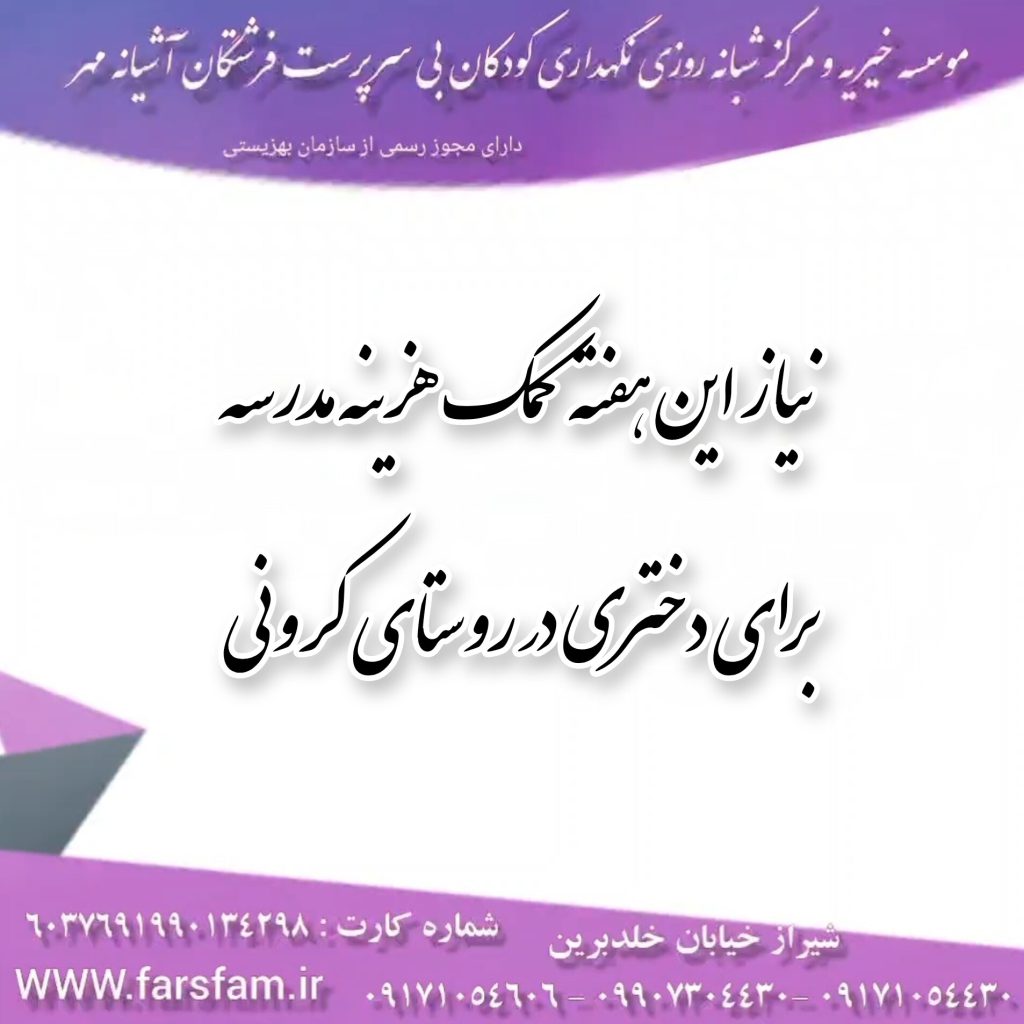 نیاز هفته مدرسه رفتن دختری در روستای کرونی